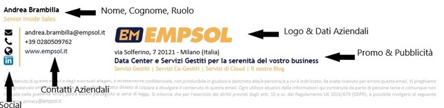 La firma a chiusura di una email dice molto di noi e della nostra azienda, potremmo dire che è il nostro biglietto da visita verso il mondo digitale, soprattutto in quei casi in cui il rapporto con il nostro interlocutore (indipendentemente dal fatto che sia un cliente, un fornitore o un collega) non è ancora consolidato.